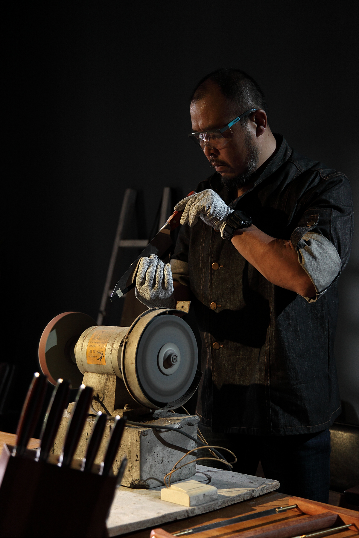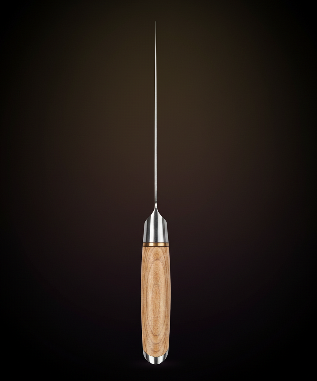 Each knife is finished with a hand-polished olive wood handle. The organic, flowing shape provides a naturally comfortable, ergonomic grip for balanced control during long prep sessions. Each handle has its own unique grain, making your set truly one-of-a-kind.
