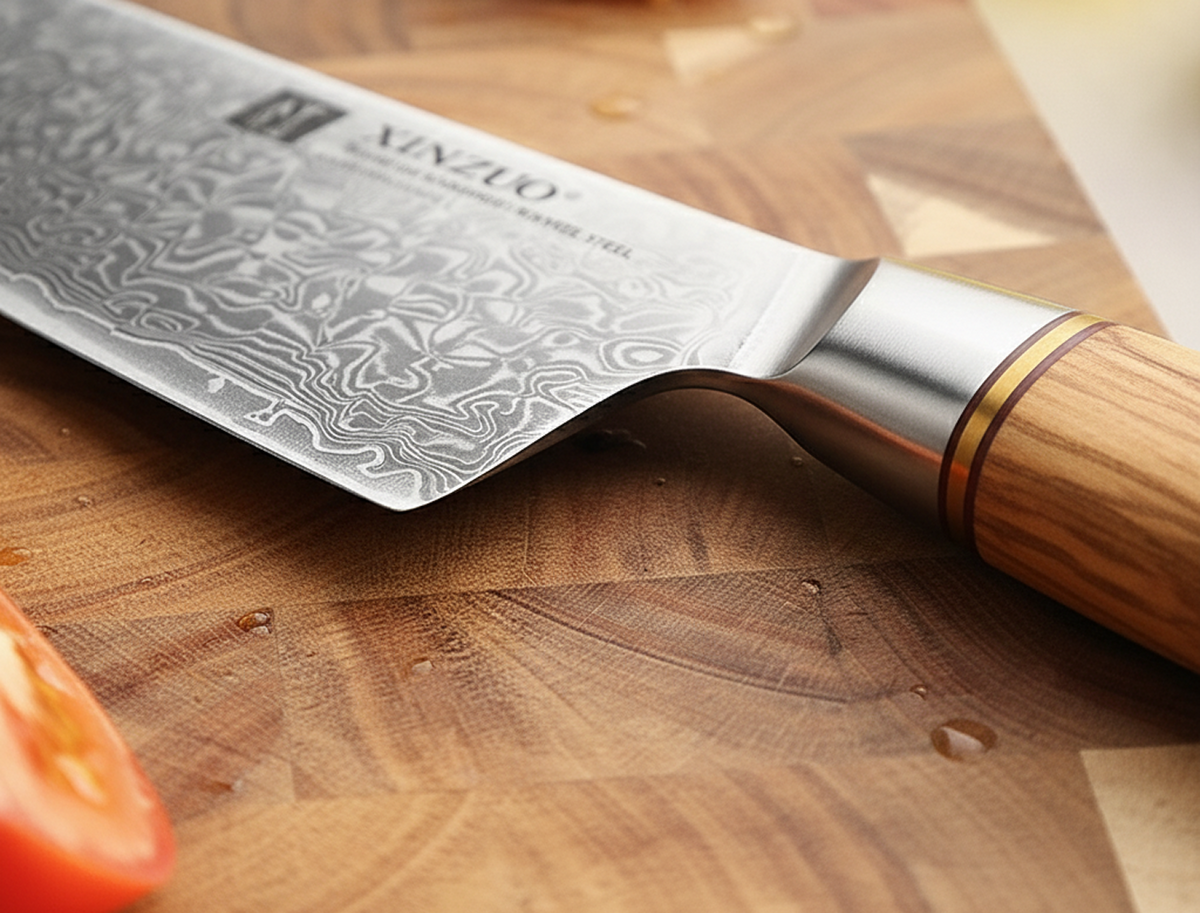The 8" Chef Knife: Your all-purpose Western workhorse. The curved belly is perfect for rocking, mincing, and powering through large prep jobs.