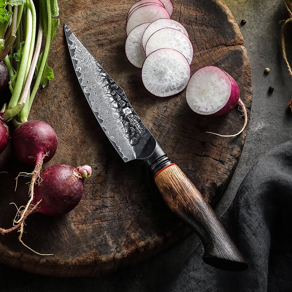 All three knives are crafted from a high-performance 10Cr15CoMoV steel core, vacuum heat-treated to 60-62 HRC. This means they don't just get incredibly sharp—they stay sharp, holding a precision edge far longer than other knives. The core is then wrapped in 67 layers of stunning Damascus steel for added durability. A signature hand-shaped burnt oak handle provides a balanced, comfortable grip for complete control.